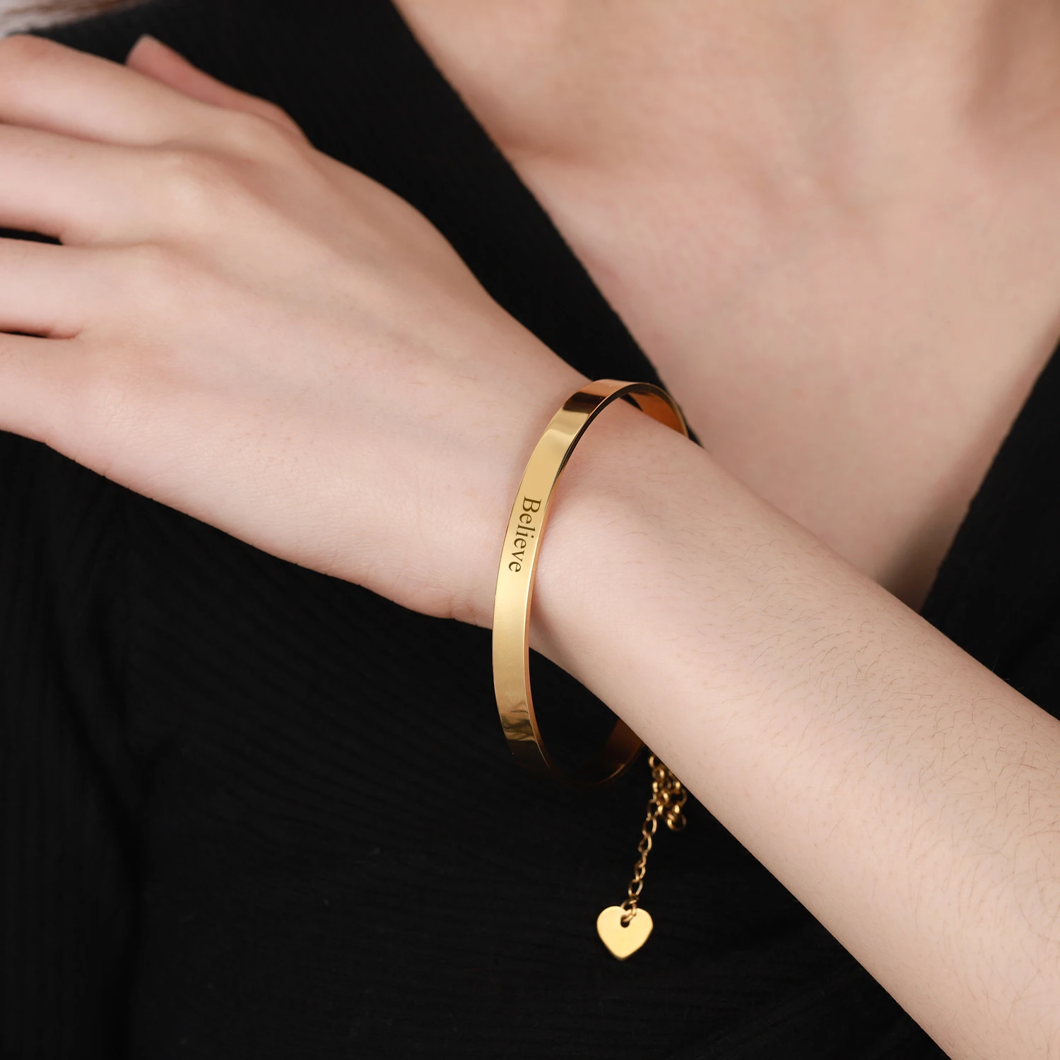 Женский браслет Qitian, из нержавеющей стали, с гравировкой в виде сердца