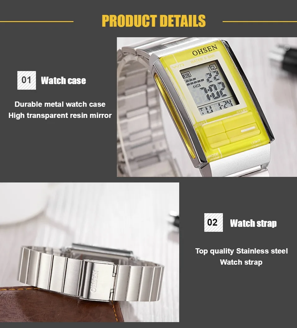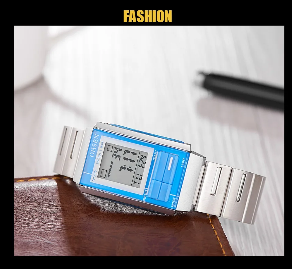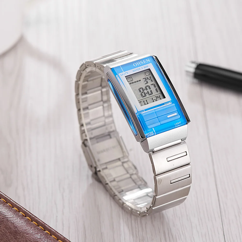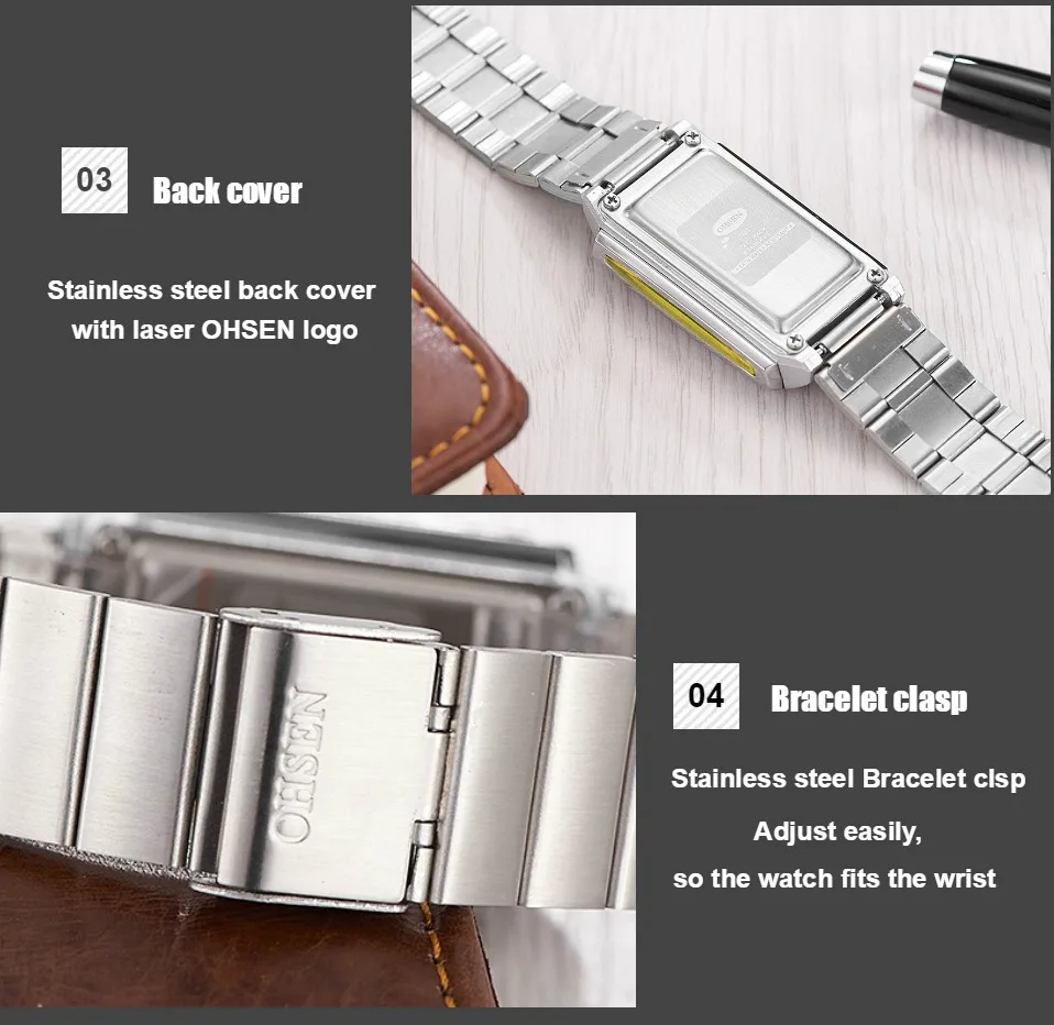 Прочный водонепроницаемый металлический чехол для часовЗадняя крышка из нержавеющей стали с лазерным логотипом OHSENРемешок для часов из нержавеющей стали высокого качестваЯпонская Кнопка Maxell внутри, более длительный срок службы