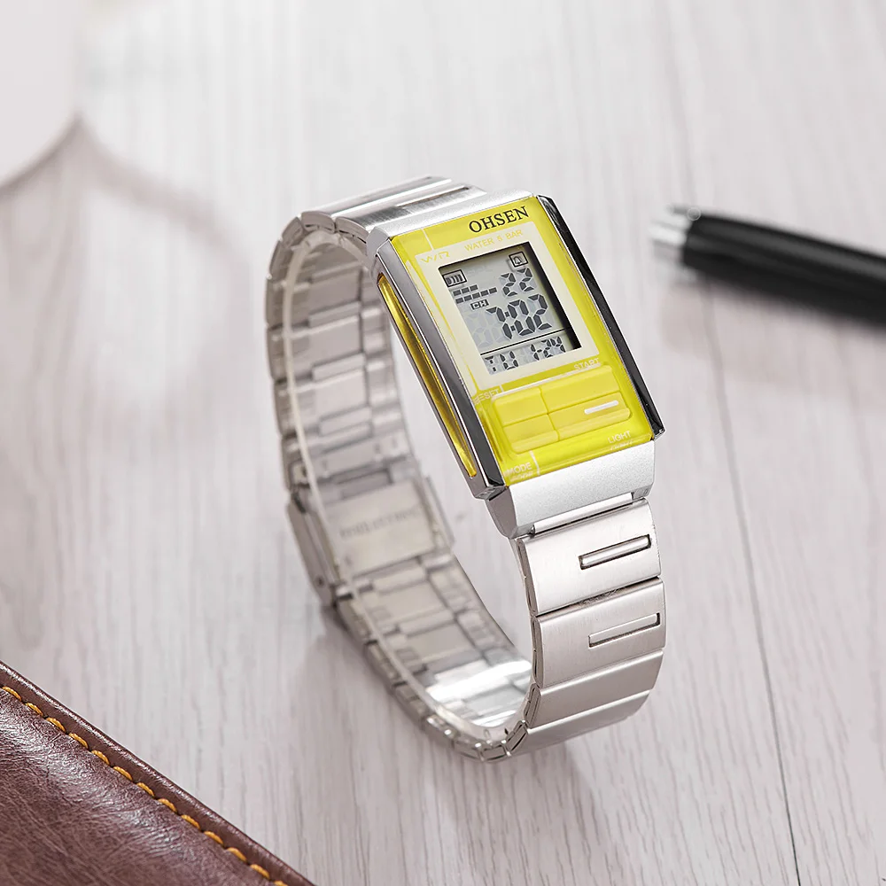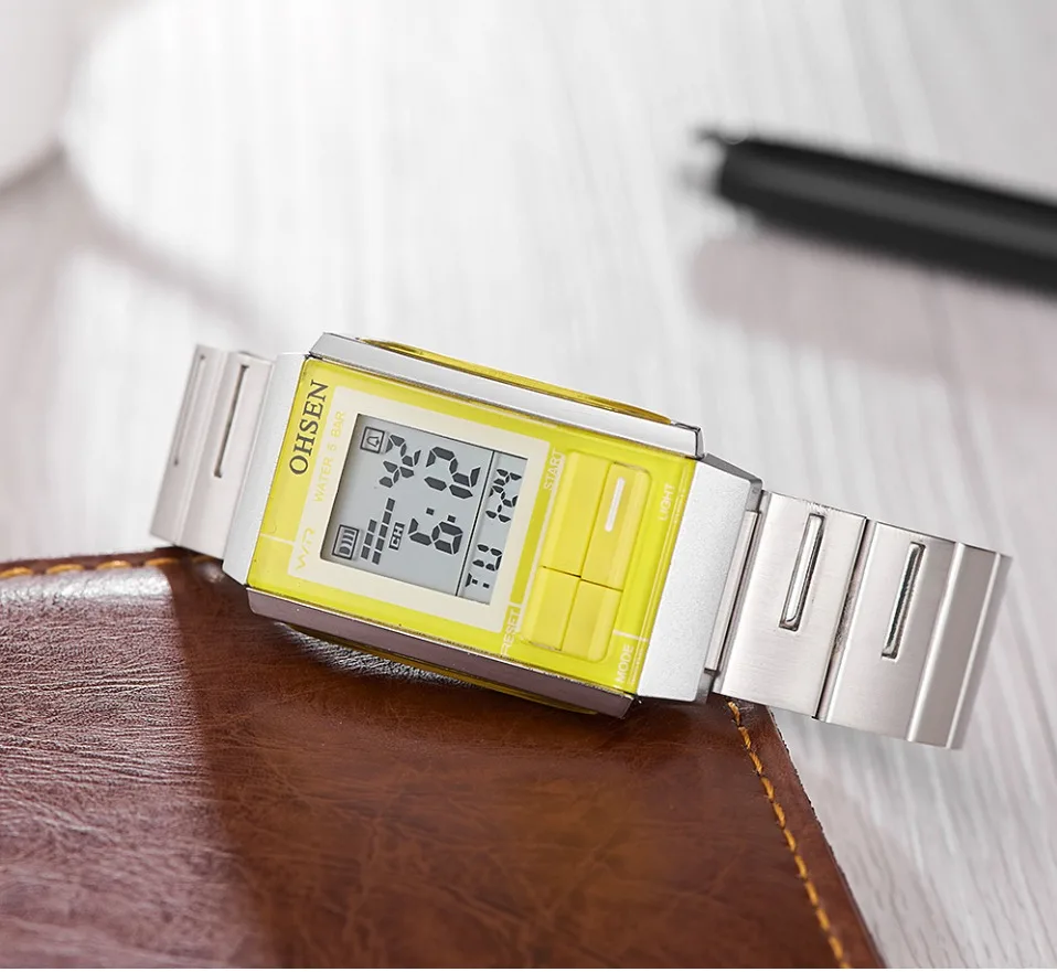 Женские цифровые наручные часы OHSEN с ЖК-дисплеем, водонепроницаемость 50 м, будильник, секундомер, Желтые Повседневные модные спортивные дамские часы в подарок, женские часы