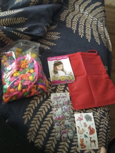 Очень быстрая доставка. Бусины хорошого качества, разые цвета и формы. Дочь очень довольная, постоянно создает новые модели. Упаковано было хорошо. В подарок дали наклейки, тату, мешочек, и раскладку с образцами. Заказывала 400 шт, пришло даже немножко больше. Приятно))