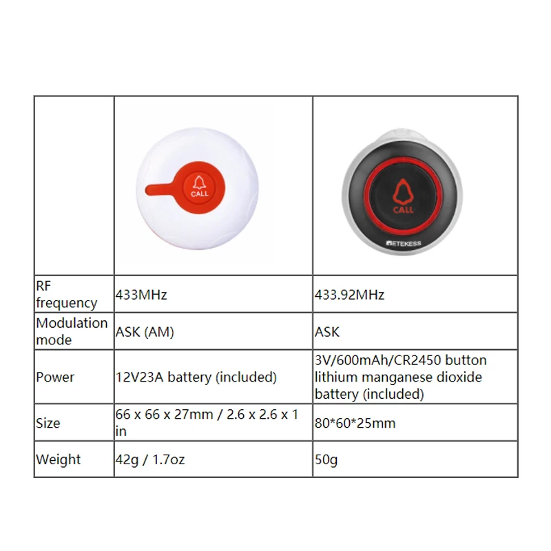 1. Это только кнопка беспроводного вызова, хост-приемник в комплект не входит. В нашем магазине есть много разных хостов беспроводного приемника, один хост-приемник может подключаться ко многим кнопкам вызова, если вы хотите выбрать хост-приемник, который соответствует этой кнопке вызова, пожалуйста, не стесняйтесь обращаться к нам.