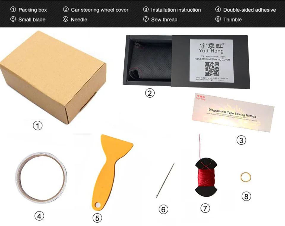 В Посылку входит: кожаный чехол, игла, нить, Инструкция по установке.