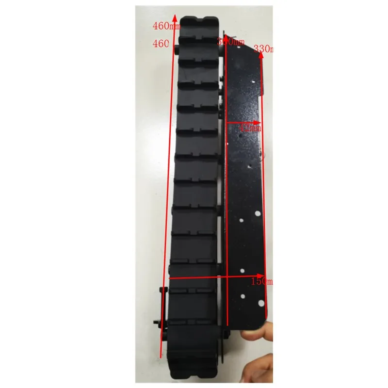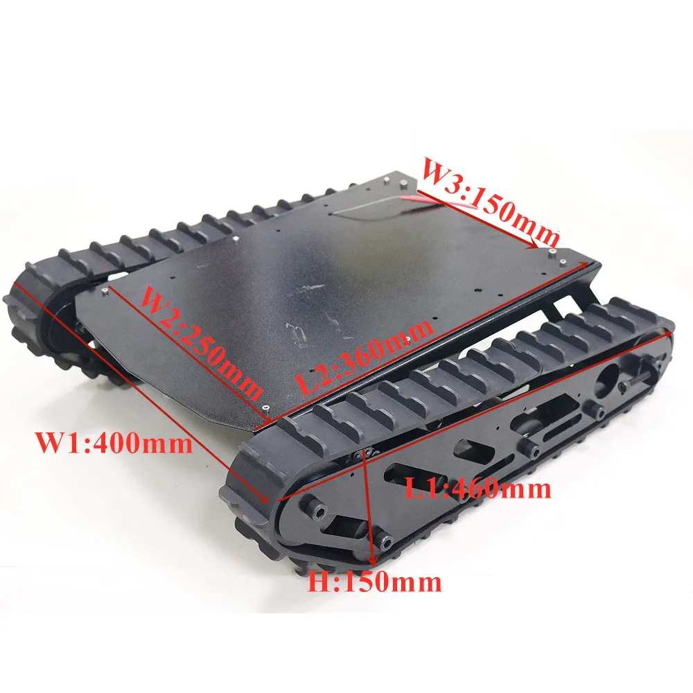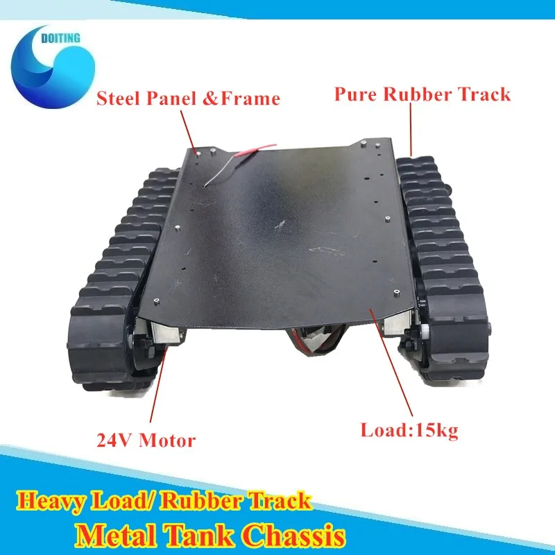 Это шасси бака большой нагрузки 15 кг с двигателем 12V/24V и чисто резиновыми дорожками.
