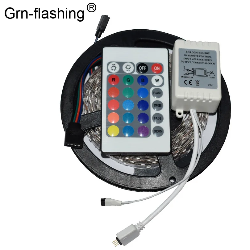 Светодиодная лента 5 м, SMD 2835, 12 В постоянного тока, RGB, не водонепроницаемая, с 24-клавишным ИК-пультом дистанционного управления для внутренней отделки