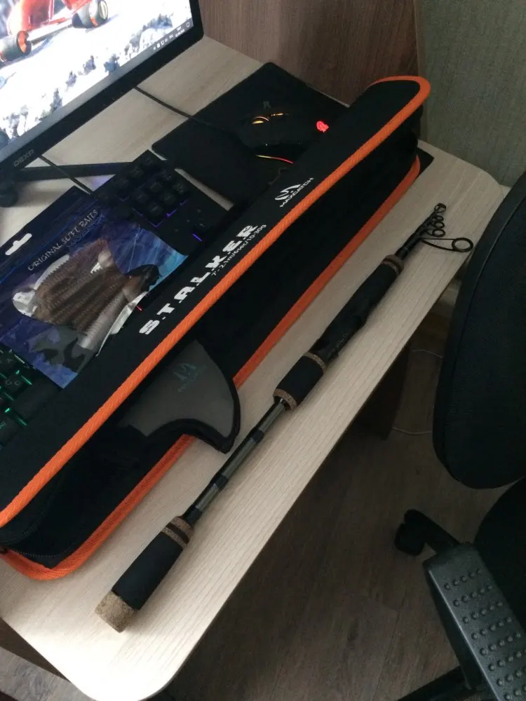 качество палки не плохое, всё аккуратно на первый взгляд .Не понравилось расположение второго большого кольца на спиннинге. Нет плавного приближения к оси палки (большое далеко, остальные близко). При забросе будет страдать дальность и точность. Футляр качественный , но с катушкой не поместится, может если палка под кастинговую катушку была бы. В футляре остаётся много свободного места. могут поместиться длинные и узкие коробочки для приманок. Производителю советовал бы подобрать кольца с более плавным переходом. Испытаю в деле только летом теперь. дошло за 20 дней