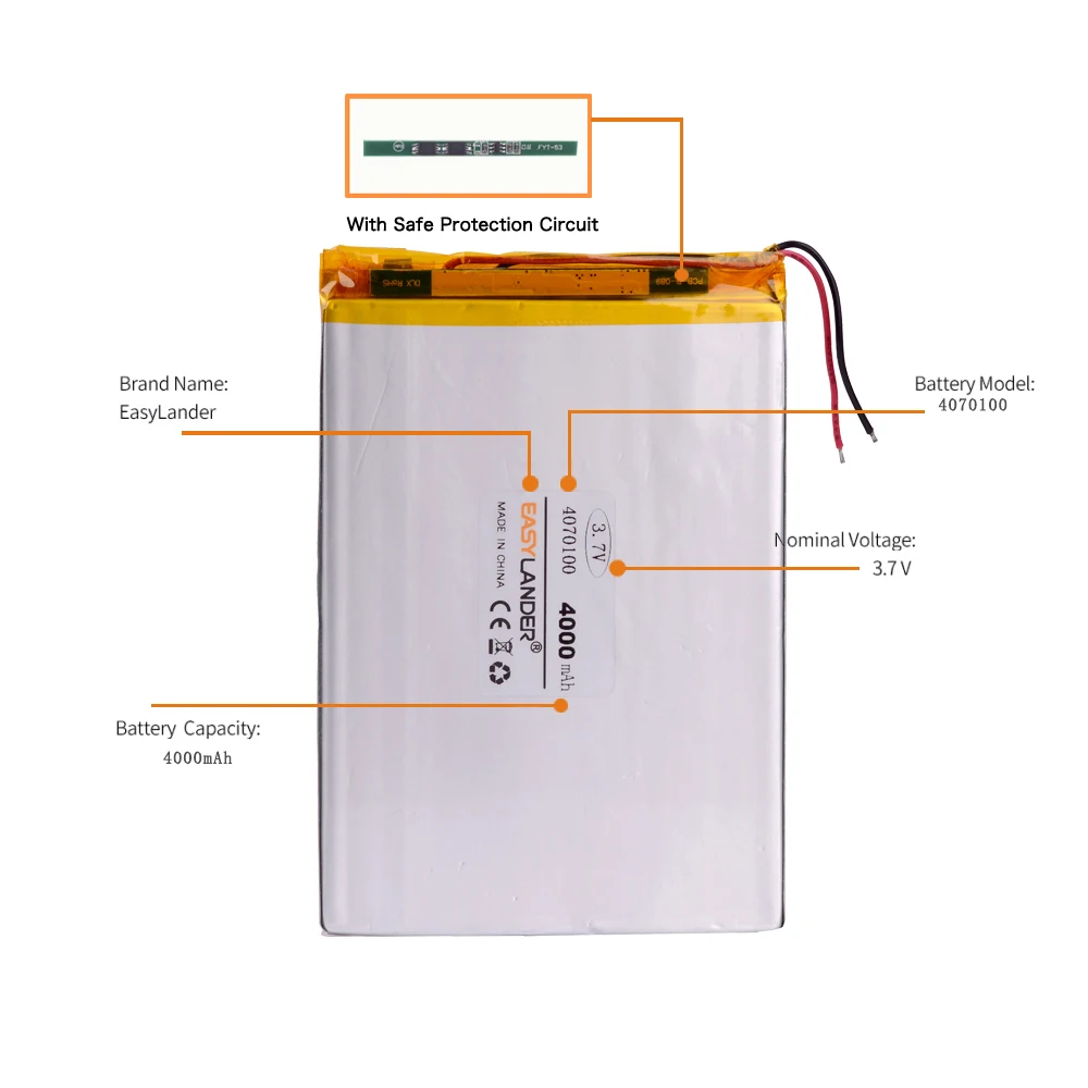 3,7 V 4000MAH 4070100 планшетный аккумулятор с защитной доской для среднего 7-дюймового планшетного ПК