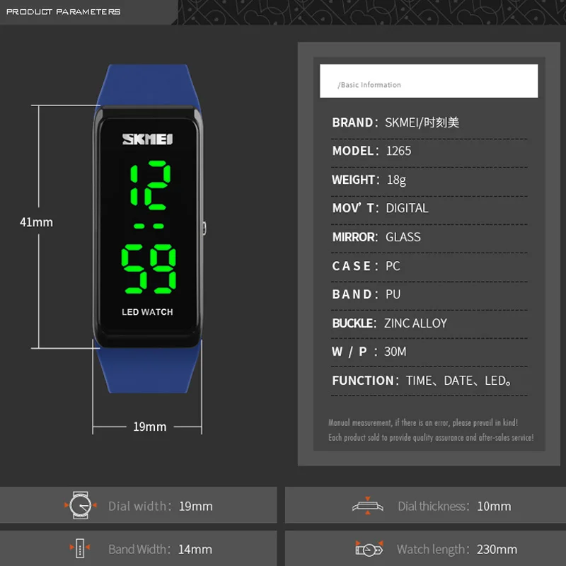 Skmei женщины спортивные часы девушки простой дизайн светодиодные часы женские цифровые наручные часы 30 м водостойкой relogio feminino 1265