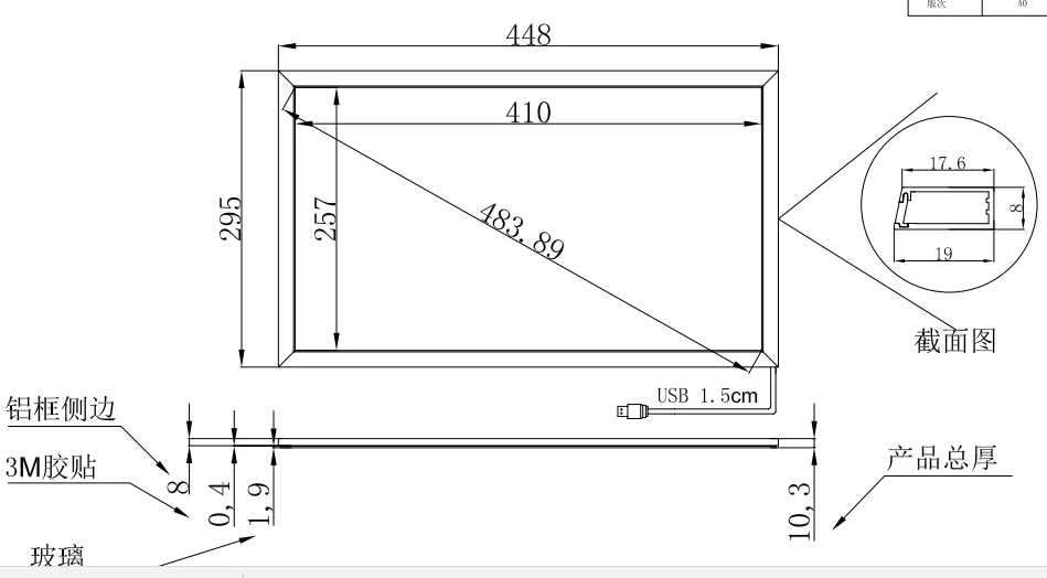 Для 19 дюймовой ИК-сенсорной рамы, мы имеем Соотношение 4:3 и 16:10, размерный рисунок, как показано ниже: