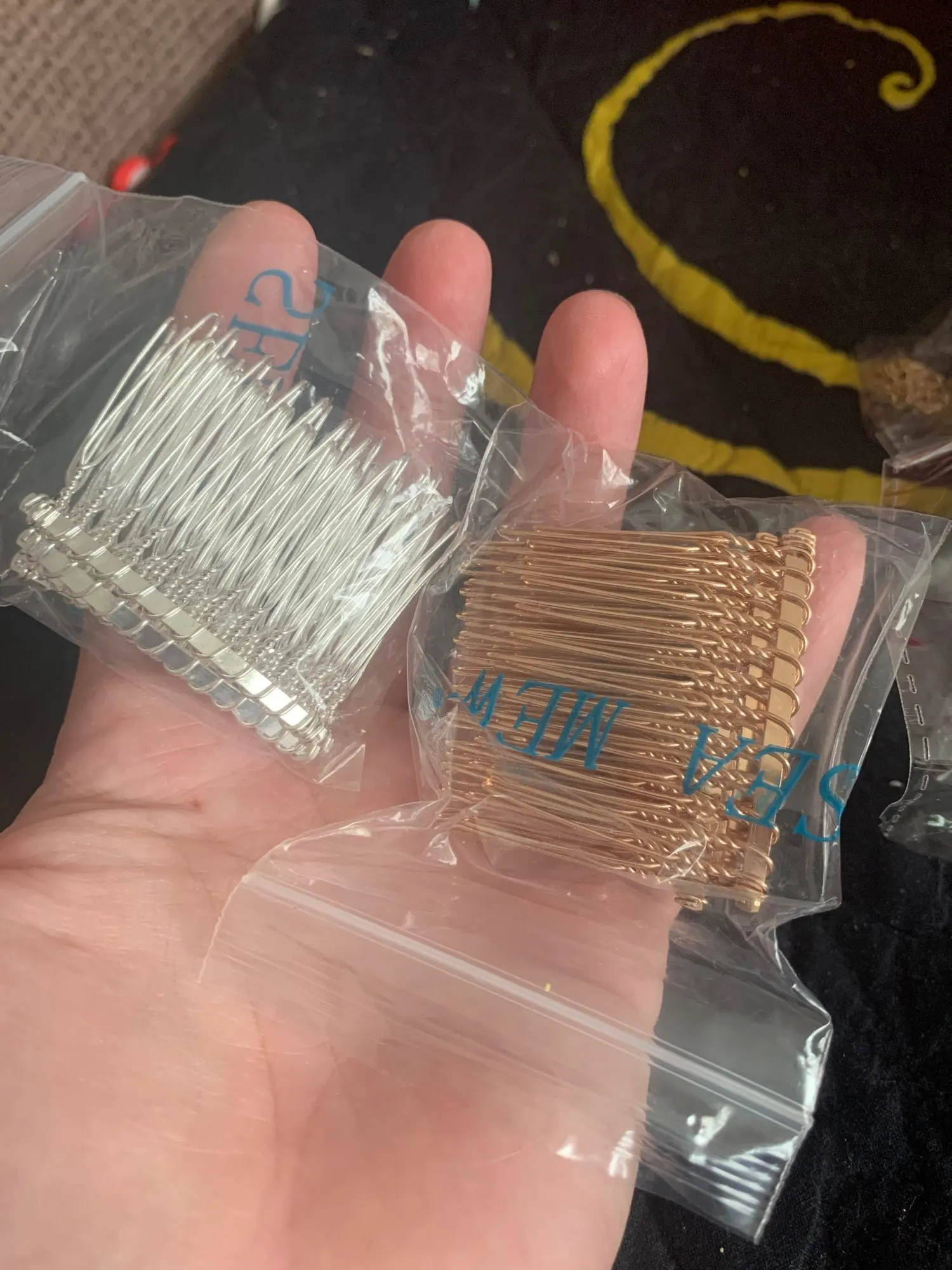 Описание точное. Гребешки красивого золотистого цвета. Цвет нежнее, чем на фото товара. В упаковке 5 гребешков. Заказано 11.11, отправлено 19.11. Доставлено в общей посылке. С продавцом не общались.