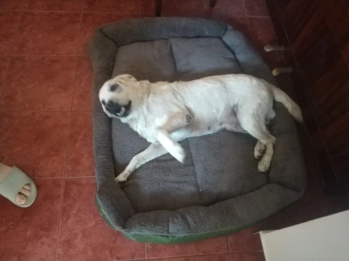 Хорошаялежанка для лабрадора. Борты не стоят как на картинке, но в моем случае это не важно, так как заказывала под размер стенок. Имеется лёгкий запах, собаке не нравится, но надеюсь он выветриться и все будет хорошо. Мягкая. Упаковка жуть, в процессе перквозки была повреждена и заляпана скотчем