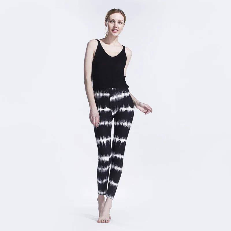 Леггинсы женские, эластичные, с высокой талией, черно-белые, с электрическим принтом, 2020