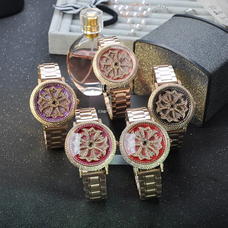 Часы Mashali женские из нержавеющей стали, брендовые Сияющие вращающиеся наручные, с платьем, лучший подарок icon star icon star icon star icon star icon star