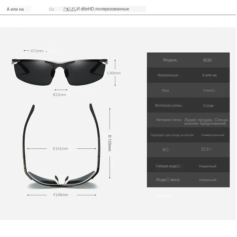 100% новый и высокое качество. Материал линз: поляризованные линзы TAC Материал оправы: алюминиевая рама Видимая перспектива: 99 (%). Уровень защиты от ультрафиолета: 100% защита от ультрафиолета UV400. Поляризация: поляризованные очки. Вес: около 23 г. Ширина линз: около 71 мм. Высота линз: приблизительно 40 мм Ширина моста: около 12 мм. Ширина оправы: около 149 мм. Длина ножек: Около 133 мм.
