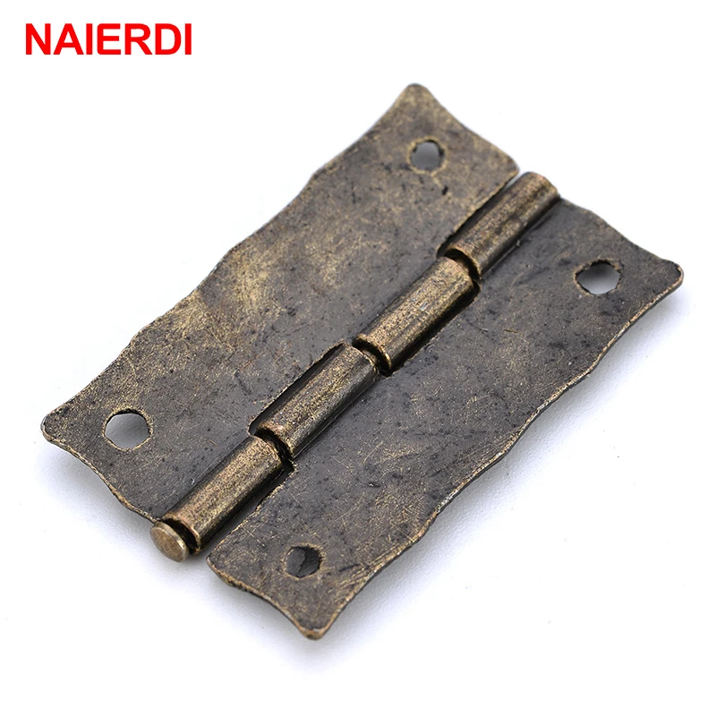 10 шт., NAIERDI, античная бронзовые шарниры, винтажная петля для украшений, деревянных коробок, мебельная фурнитура