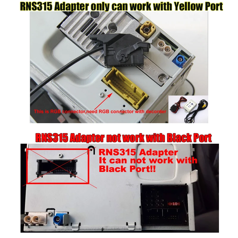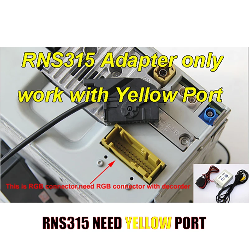 2. RNS315 подходит только к желтому порту RGB, пожалуйста, обратите внимание, если ваш rns315 в черном цвете, он не может быть совместим!