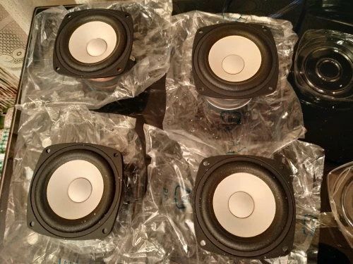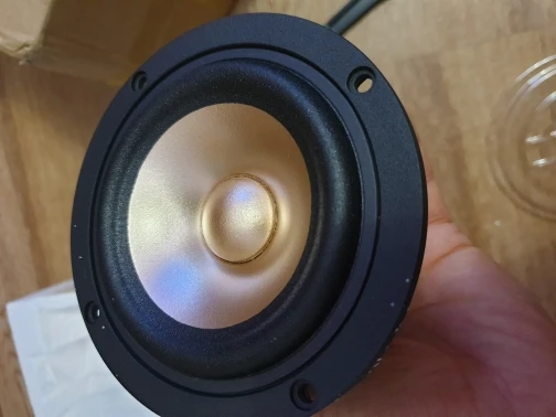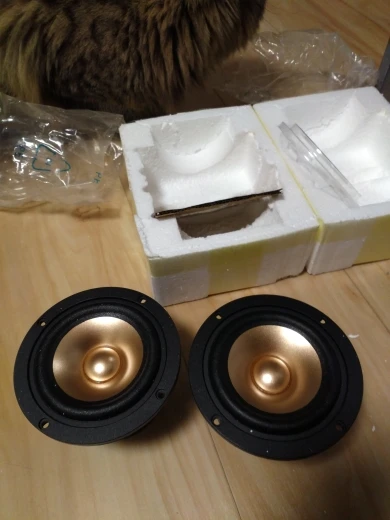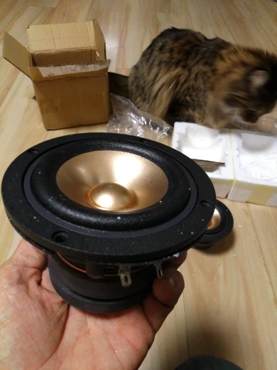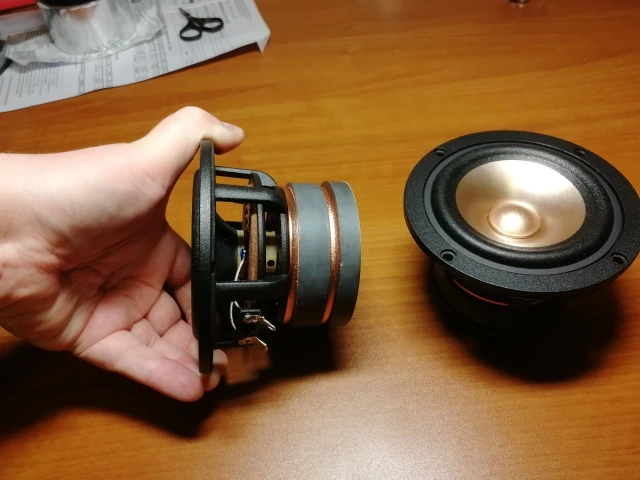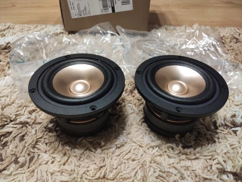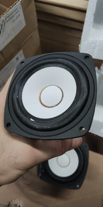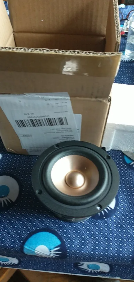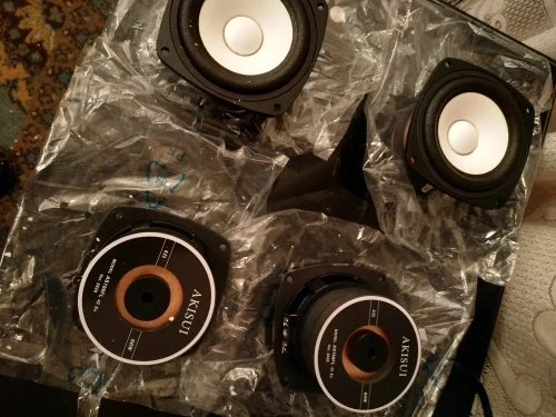Доставка до двери курьером. Упаковка целая, между динамиками картонка. Динамики собраны добротно, 8 ом. По быстрому оформил в картонную коробку- играют отлично, на первое сравнение с 4гд35- акисуи взяли первенство по разборчивости, по вч, по чувствительности рядом. Буду оформлять в рупор от fostex fe103 по чертежам из интернета, потенциал большой