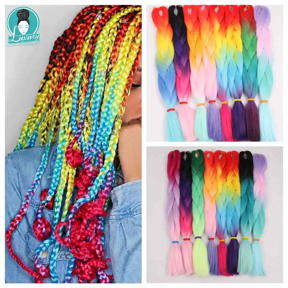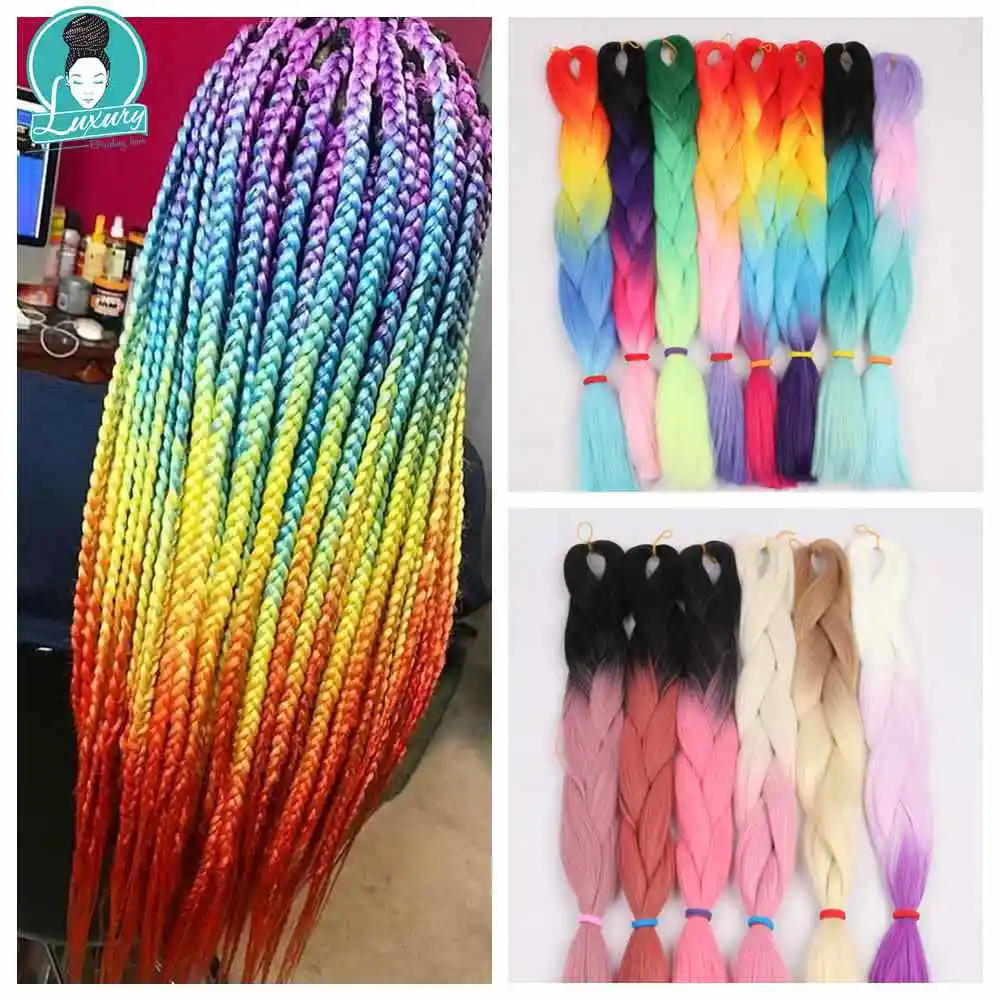 Роскошные для плетения 3 шт 100 г/шт. 24 "яки прямые 2 3 4 тона Омбре плетение волос Синтетические крючком огромные косички