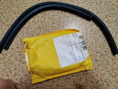 Дошло за 20 дней в сборной посылке. В упаковке 2 резинки, обрезаются и устанавливаются в гибридный дворник без проблем. Трут отлично, не скрипят. Думаю на год должно хватить.