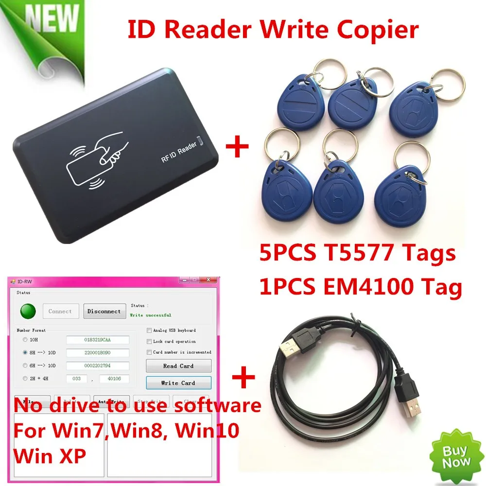 125 кГц RFID ID CardReader Писатель Копир Дубликатор для контроля доступа + 5 шт. EM4203 /T5557 Теги + демо программное обеспечение CD Бесплатная доставка