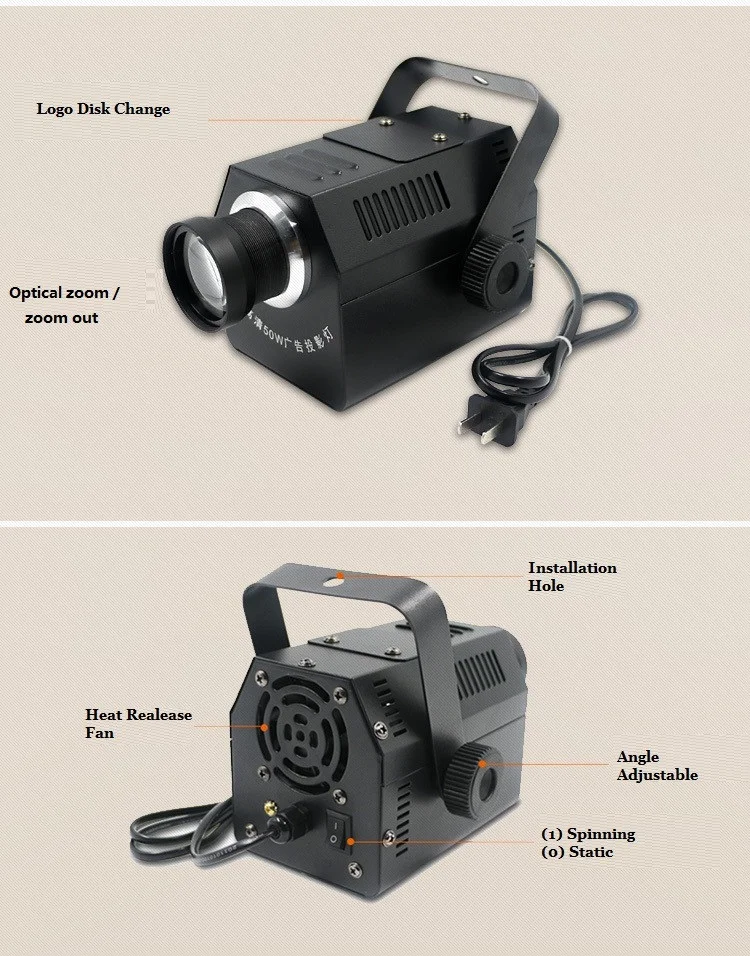 Проектор гобо, лазерный проектор с высоким разрешением, 50 Вт