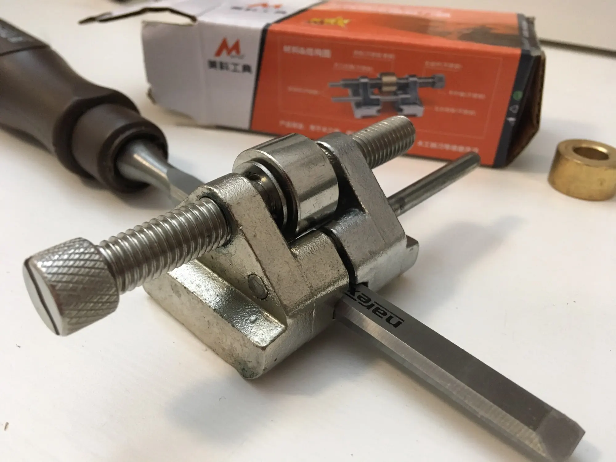 Штука хорошая, но стамеска 8 уже не зажимается! Заказ пришёл чуть больше месяца. Но выслали быстро