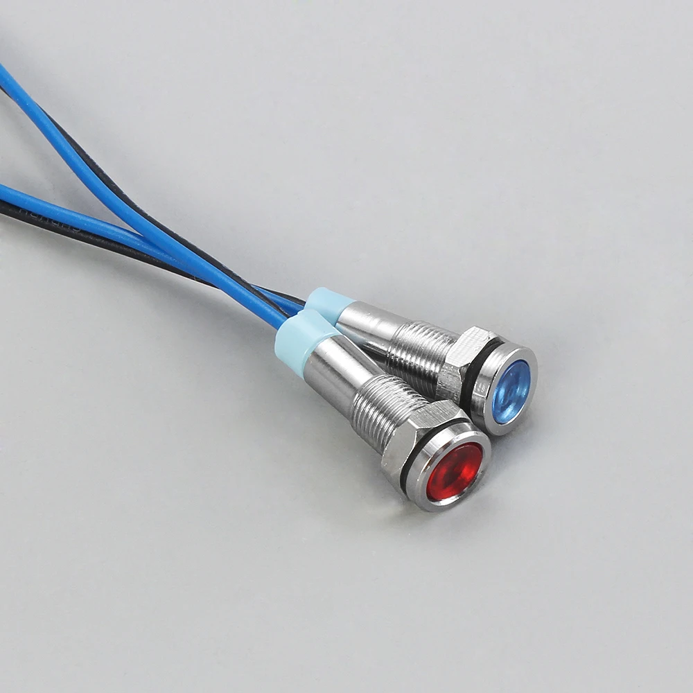 Сигнальная лампа, 6 мм Предупреждение светодиодный металлический индикатор, водонепроницаемая, IP67, 6 в, 12 В, 24 В, 220 В, с проводом, красный, желтый, синий, зеленый