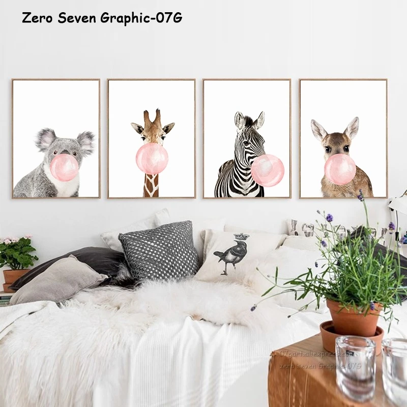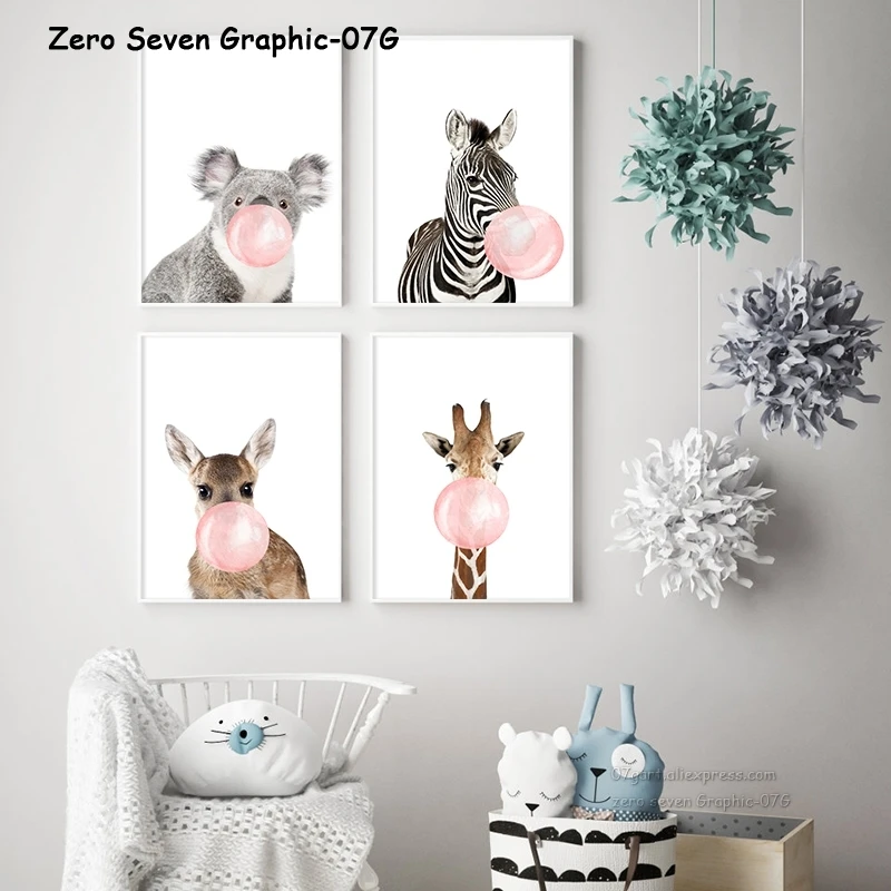 07G симпатичная дует жевательная резинка рисyнкoм жирaфa или коала картина с рисунком животных настенный художественный Принт плакат для детской комнаты украшение дома