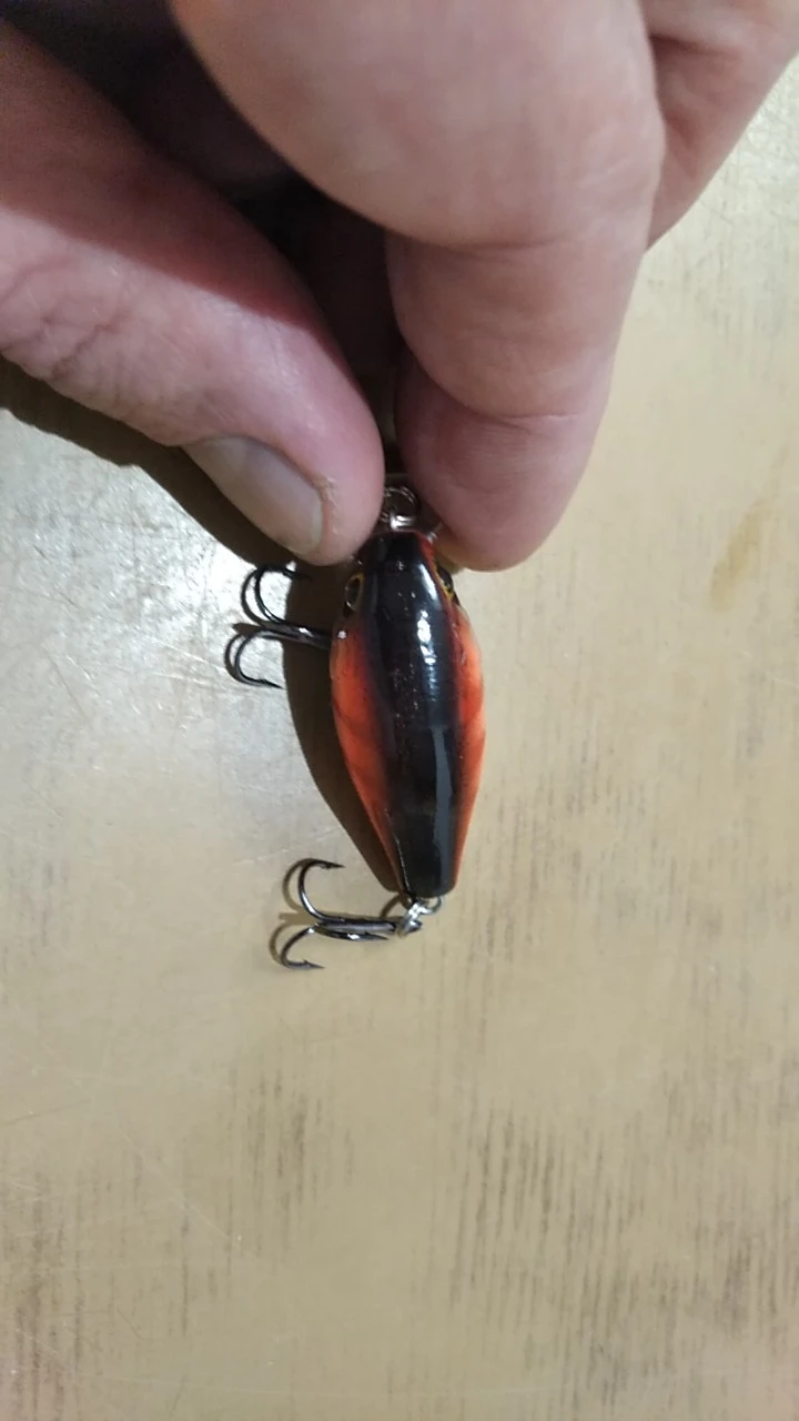 Болванка огонь . Доставка до Москвы всего пару недель пакетом. Болванка выполнена на 6 из 5! Есть высокочастотная игра на равномерке. Плавает, даже с небольшой скруткой. Проклейки петли не требуют. Крючки не путаются между собой, однако они не очень острые на 3,5 из 5, я бы сменил. Кольца надо менять, очень крупные для такого размера. За свои 50 рублей очень хороший, однозначно можно рекомендовать к покупке.