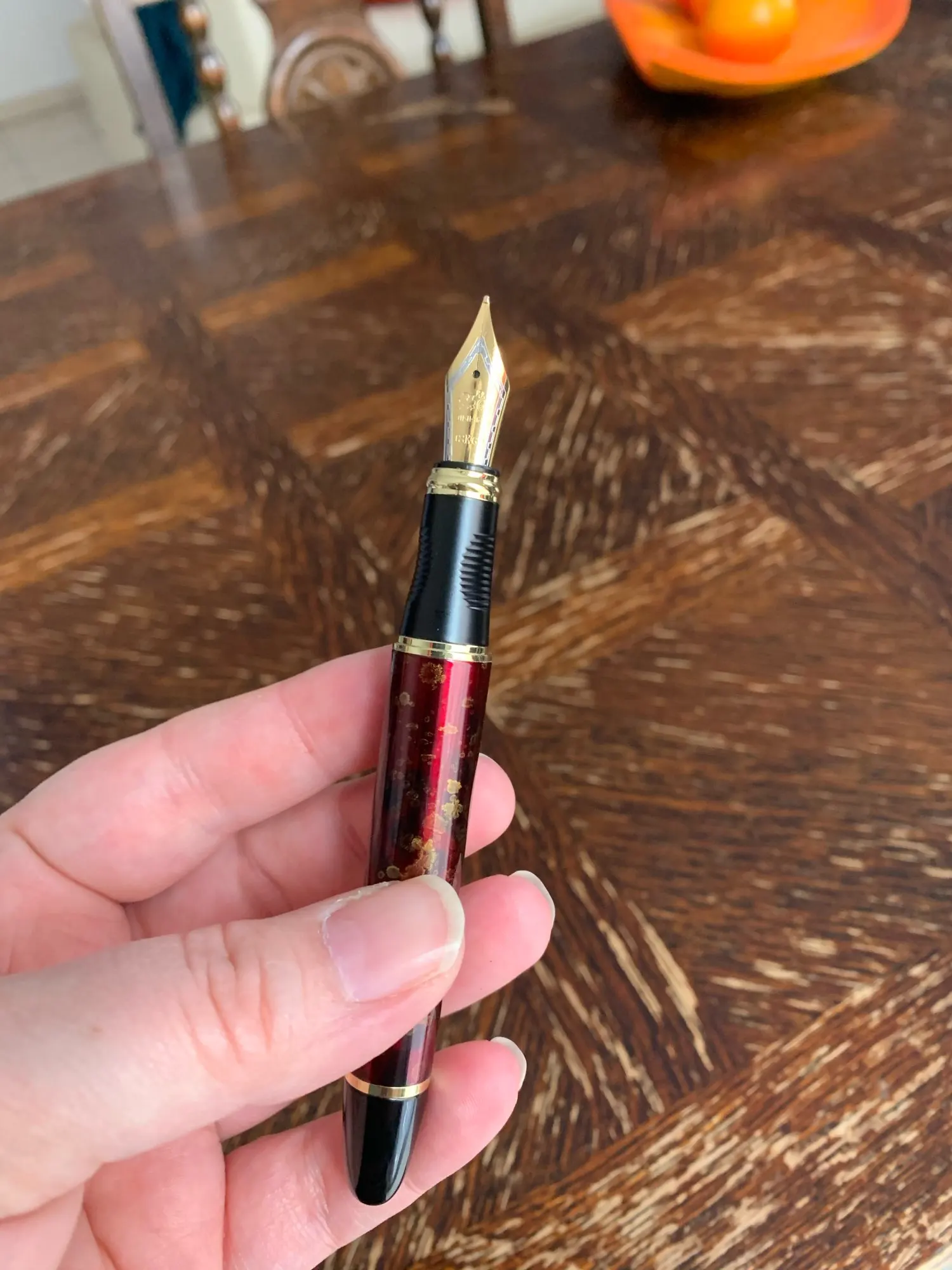 Мне нравится красный с золотыми акцентами, ручка прочная и плавно записывает. Наконечник действительно красивый и производит линии, которые показывают затенение ваших чернил красиво. Продавец отправил ручку быстро и дружелюбно. Я настоятельно рекомендую эту ручку и этого продавца.