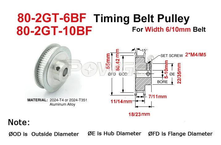 Номер модели80eeth 2GT Pulley Fit Width 6/10mm Belt