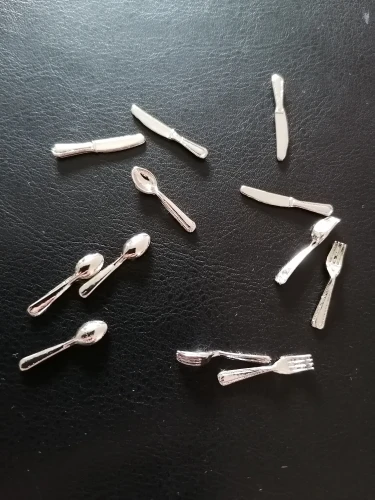 В комплект входит: мини-нож и вилка 12 шт.Не полный размер, только для 1/6 1/12 кукольный домикВключает: 12 шт./компл.