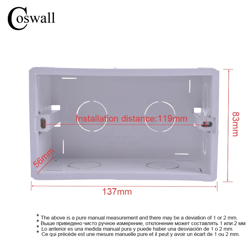 Утолщенная внутренняя Монтажная коробка Coswall, глубина 56 мм, для настенного выключателя или розетки размером 146 мм х 86 мм