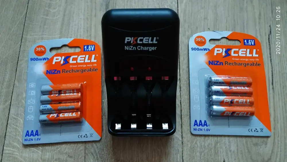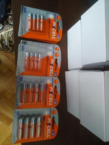 Доставка месяц, трек отслеживался, упаковка в две картонные коробки. Товар как на фото продавца. Проверил пока только два аккумулятора, ёмкость немного выше заявленной. Думаю остальные тоже будут в порядке. Учтите, что ёмкость не 900 мА ч, а 900 мВт ч. Зарядка работает, но можно заряжать только 2 ААА (( Фиксируются ААА очень плохо, постоянно вылетают.