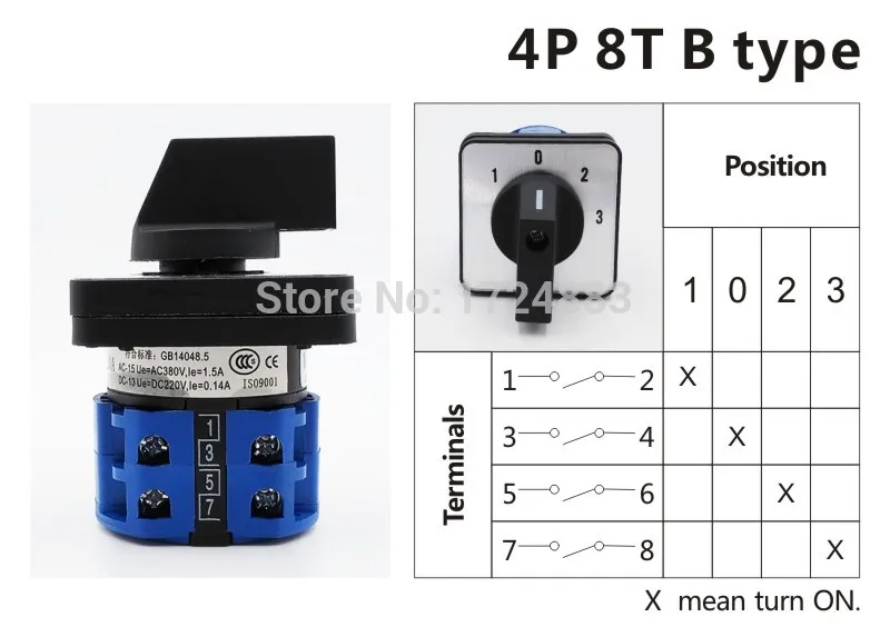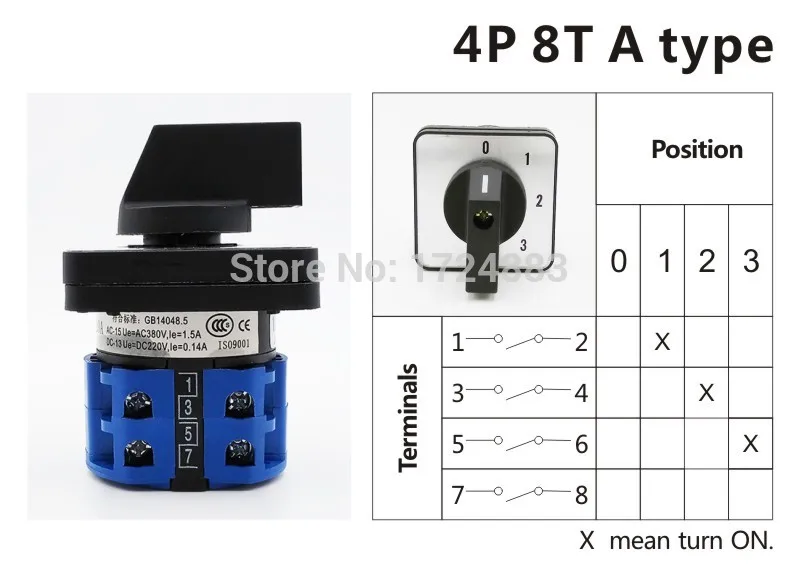 Электрический 234 позиции, 8 клемм, поворотный кулачковый переключатель 500 в 20 А LW28-20