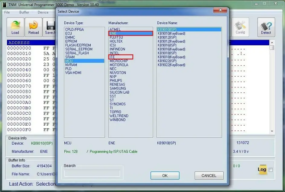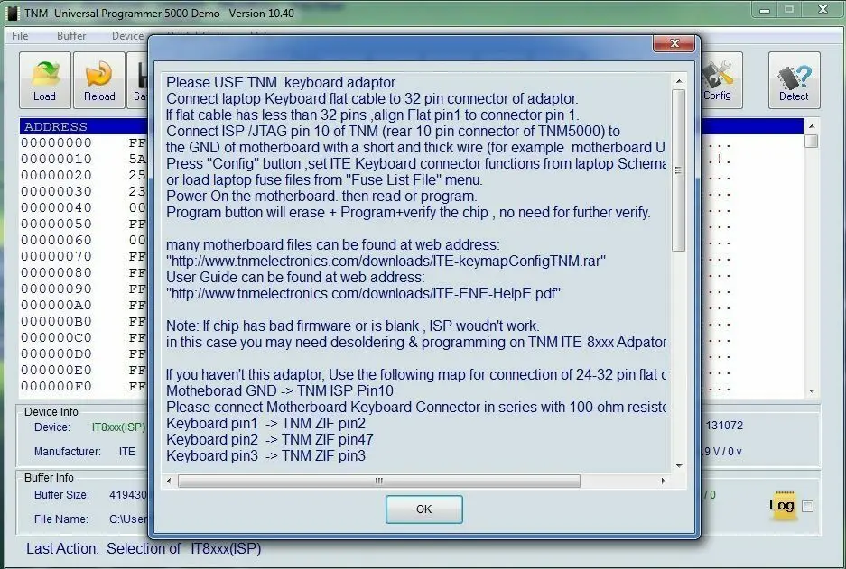 6. Нажмите кнопку "Config", установите ITE разъем для клавиатуры с функций от ноутбука схемы или загрузки файлов предохранителей ноутбука из меню "файл списка предохранителей".