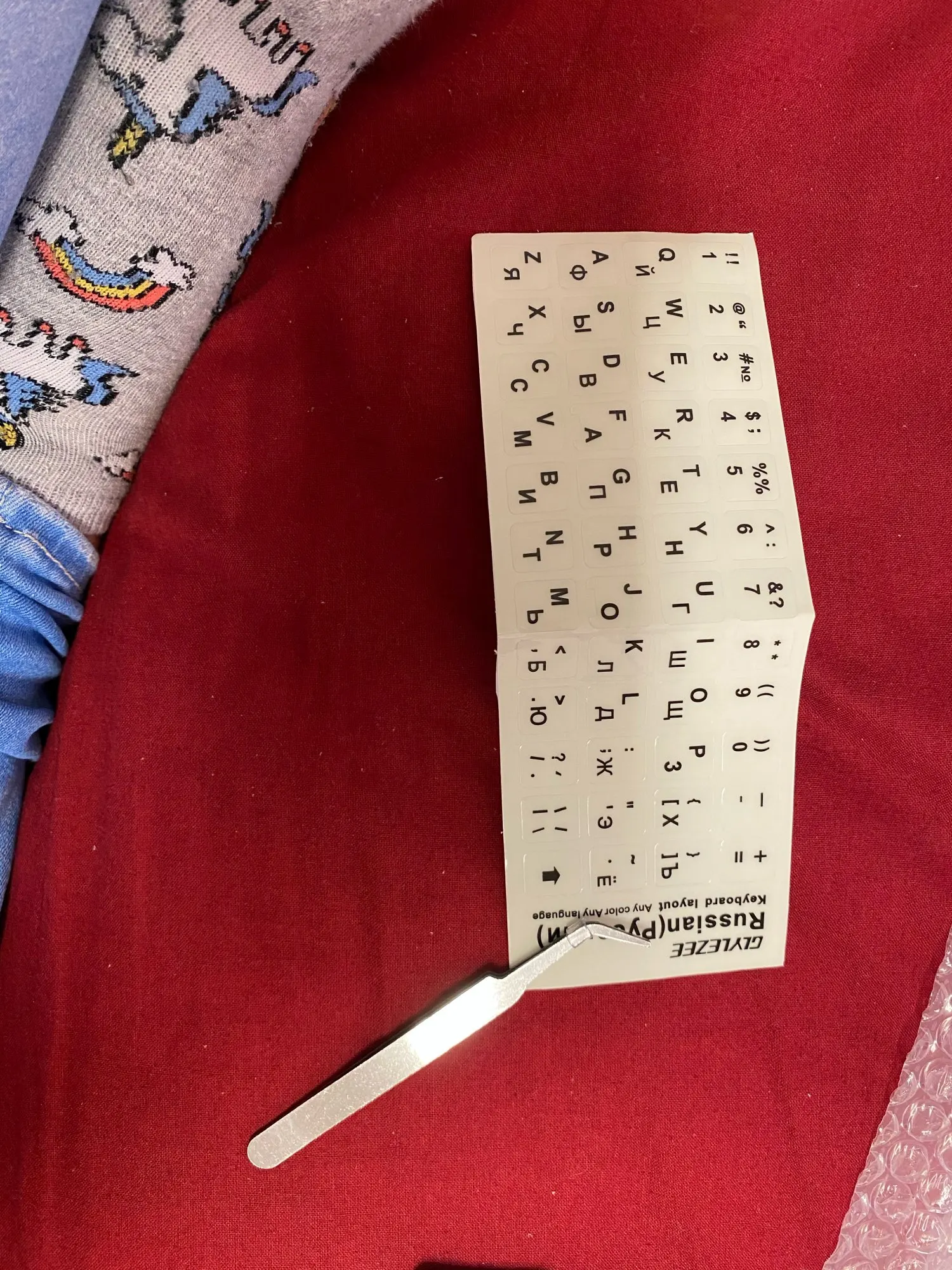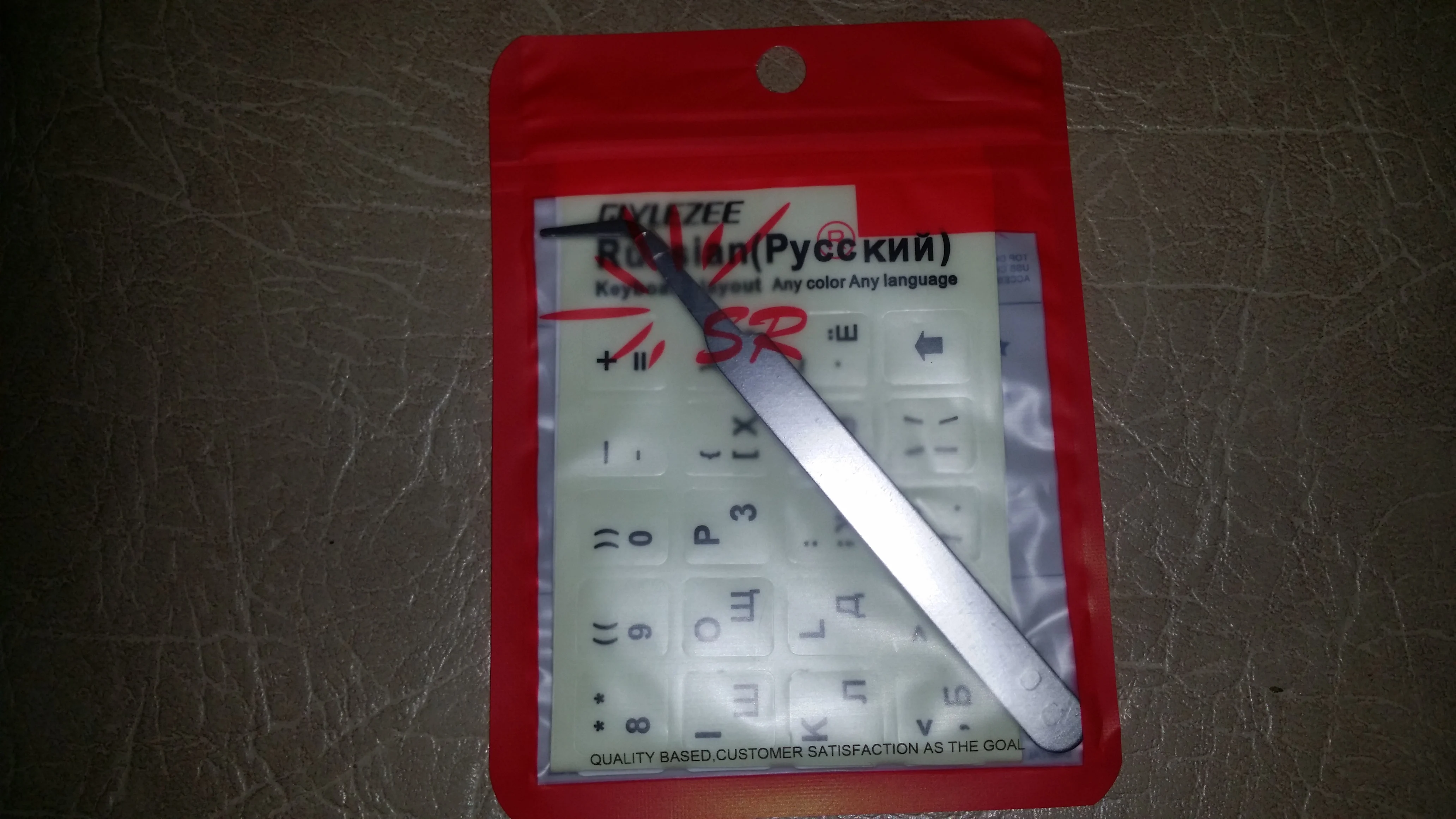 Заказ пришёл через 3 недели до Тюмени, соответствует описанию, только наклейки немного меньше, чем клавиатура