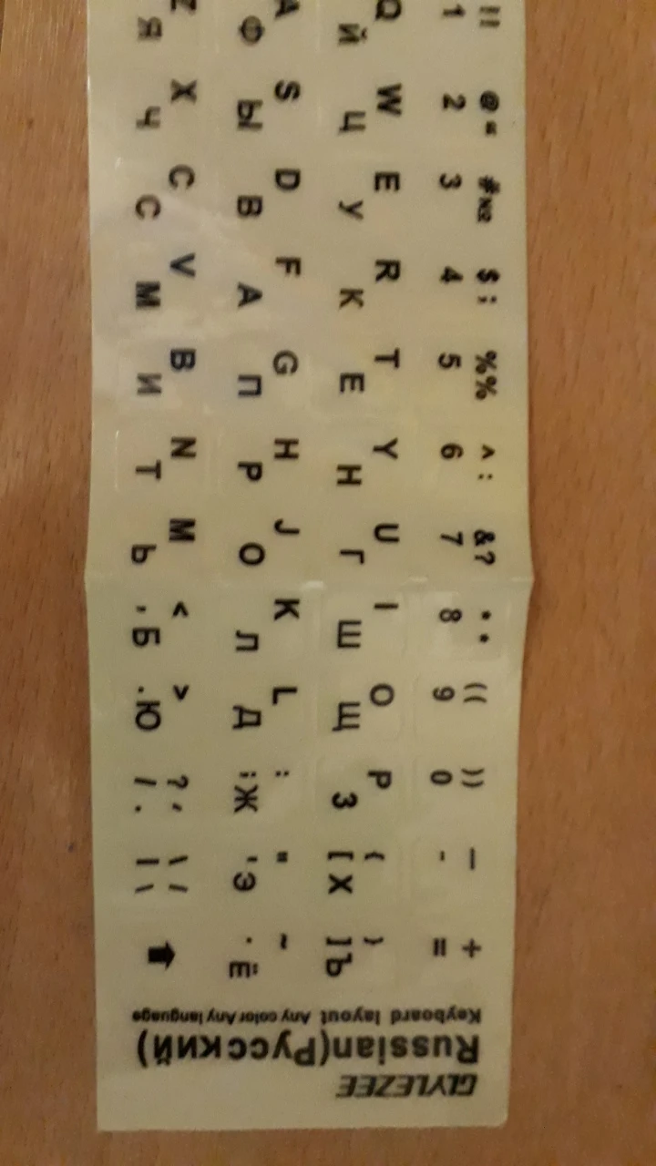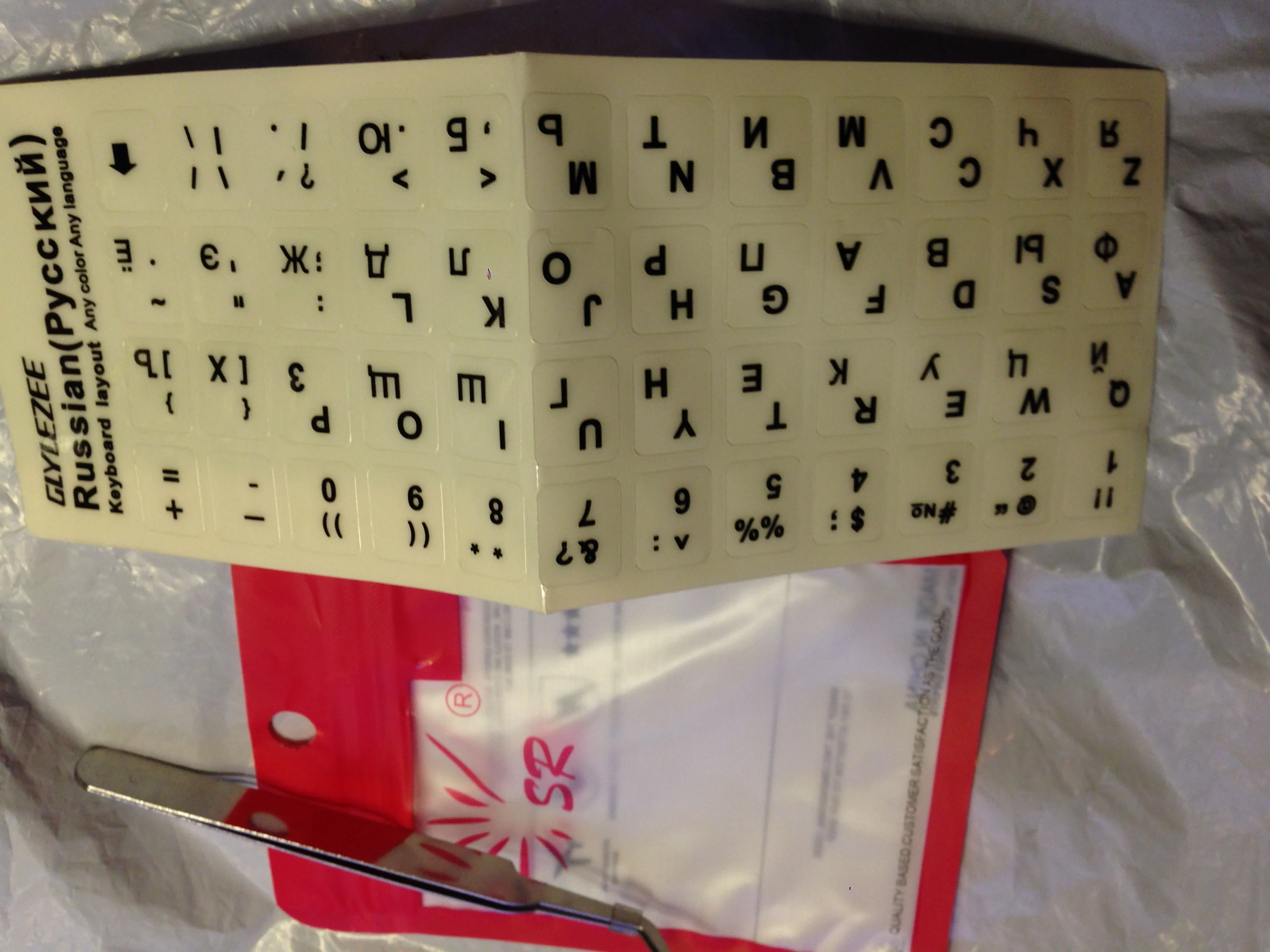 Покупаем второй раз. Всё хорошо. Светится не очень долго и не очень ярко, но для ночной печати достаточно, чтобы примерно видеть клавиши. Этот набор подходит только для полноразмерных клавиатур! Иначе не совпадают русские буквы, которые не уместились на узкой клавиатуре. В наборе не хватает наклеек для клавиш ENTER, Ctrl, Alt, Tab, Fn, Option, Caps, Command и стрелок курсора. Однако это не критично. Между наклейками есть зазоры, которые можно отдельно налепить на что угодно, в т ч на Enter и пр. Спасибо изготовителям, перевозчикам и продавцу! Мы любим Китай!