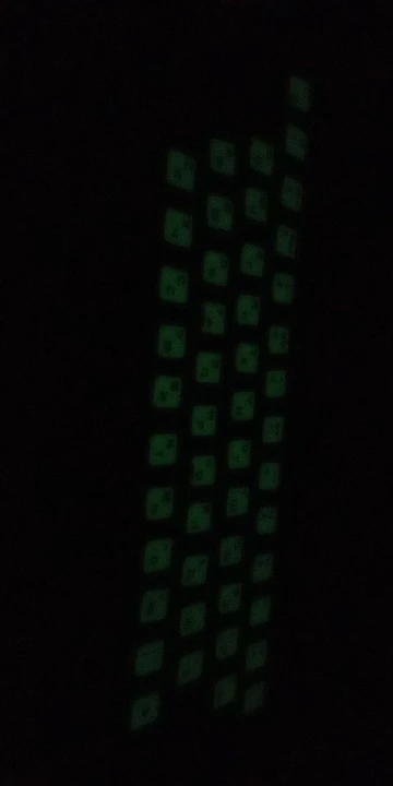 Выглядит по итогу лучше, чем я ожидал. Светятся ярко, гораздо ярче чем на фото у меня, хотя, конечно, несколько слабее, чем на фото продавца. Но близко. Клеятся плотно, состоят из бумажки с наклееной поверх толстой пластиковой защиты. Посмотрим, насколько хватит, но по ощущениям достаточно качественные. Своих денег точно стоят