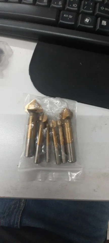 Концевая фреза из быстрорежущей стали с титановым покрытием сверление фаски, 3 канавки, 90 градусов, стойка для дрели, 6 шт.