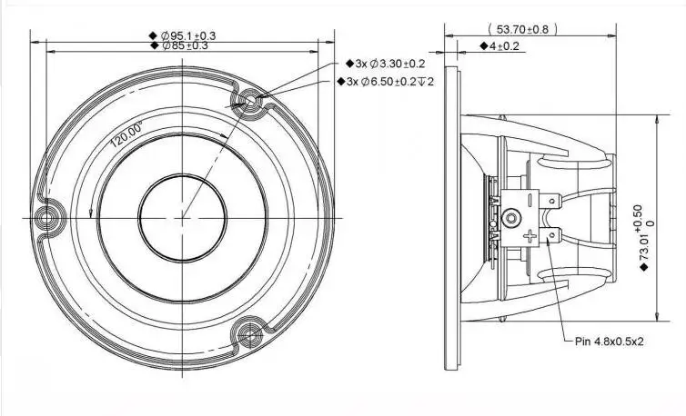 Алюминиевая рамаКонус из алюминиевого сплаваНеодимовый магнитМаксимальная мощность: 50 Вт 4 Ом