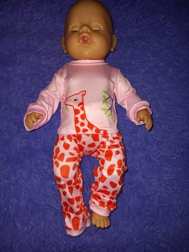 Пришла пижамка довольно быстро, качество хорошее. Но для моей куклы 1/4 BJD 42см (Минифи Актив тело) пижама не подошла: штаны короткие и пижама ей, ну, очень широкая. Взяла на свой страх и риск, буду перешивать. Всё-таки эта одежда для пупсов, а не для BJD кукол.