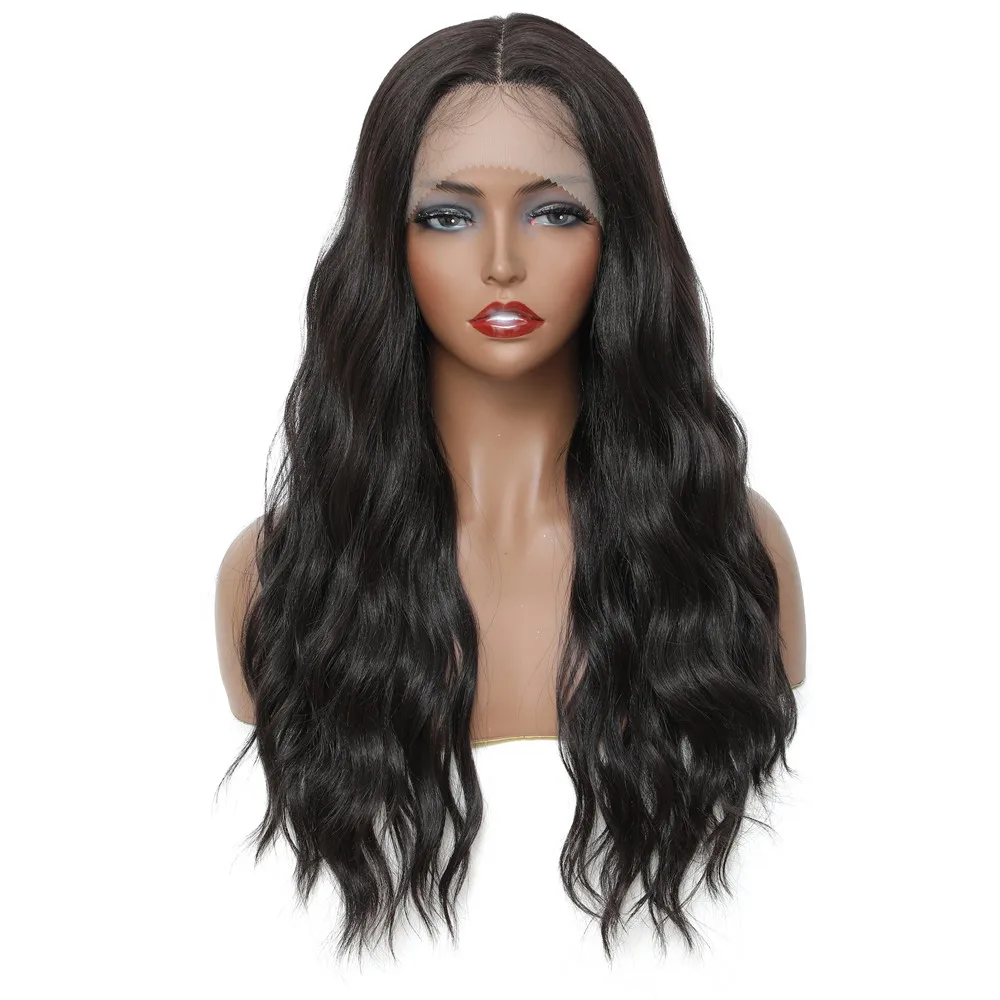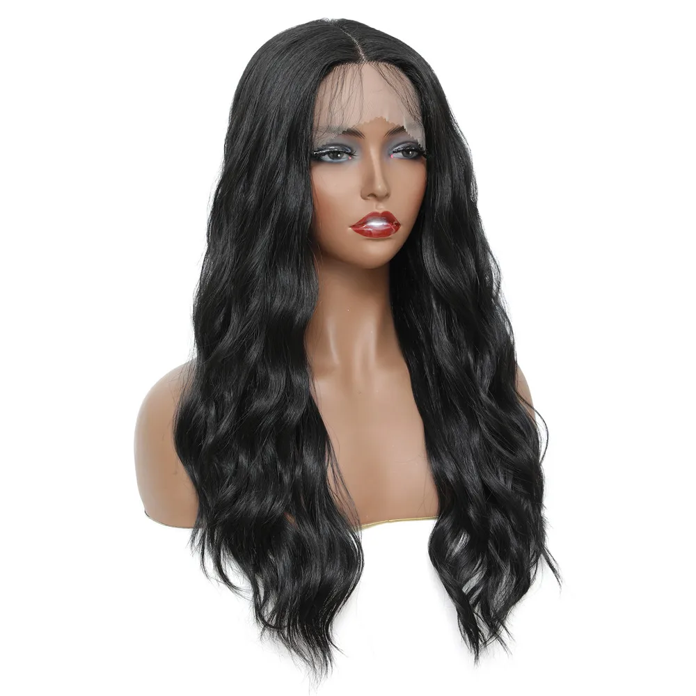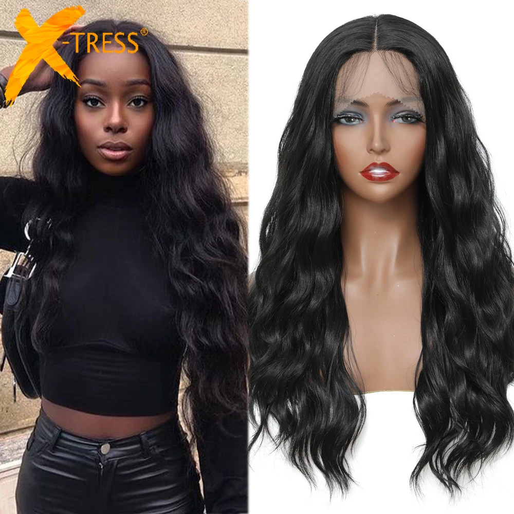 Парик из X-TRESS синтетических волос черного цвета, длинные натуральные волны, свободные участки, парик для женщин, термостойкий мягкий Повседневный парик