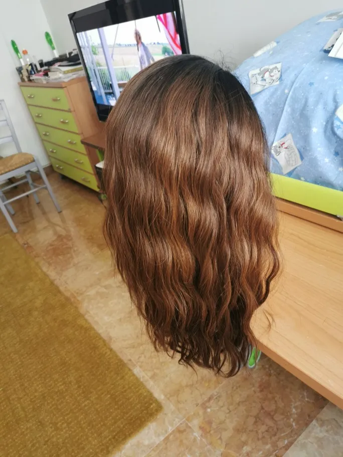 ¡Realmente parece mi pelo pero más largo! Impresionante. Para ser sintética, nadie diría que ese no es mi pelo. Como mi raíz es oscura como la de la peluca, aunque se asomara algún pelo, ni se notaría. El pelo es más fino que el de otras pelucas sintéticas que tengo, por lo que al tacto, da la sensación de un cabello más natural. Tiene una cantidad suficiente de pelo, aunque un poquito más quedaría mejor. Lleva 3 "peinetas" para engancharla bien a la cabeza y evitar que se mueva. No pesa y es muy cómoda de llevar. La mejor peluca larga que tengo en cuanto a comodidad (y no tengo pocas). Ahora solo me falta recortar la "redecilla". El envío ha sido rápido y venía con regalito. En general estoy muy contenta con la compra. Con esta peluca no da apuro salir a la calle y que la gente se de cuenta de que llevas una peluca, porque no lo parece.
