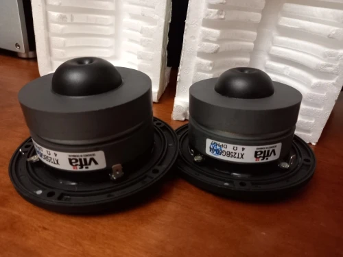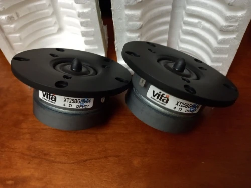 Прочная толстая коробка, пенопласт, поиолоновые вставки, упаковка неубиваемая. Сами твитеры тяжелые , выполнены безупречно. Сопротивление постоянному току у обоих по 3,2 Ом. Пока все нравится завтра буду эксперементировсть сл звуком. Твитеры очнь даже похожи на фирменные .