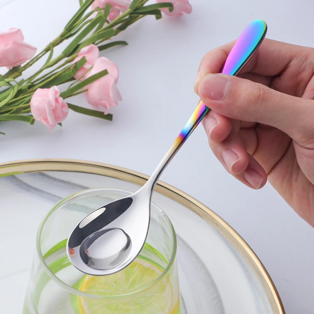 Набор ложек, 6 шт.набор, чайная ложка с зеркалом для чая, мини 188(304), нержавеющая сталь, с черным покрытием, набор ложек, посуда, чайная ложка