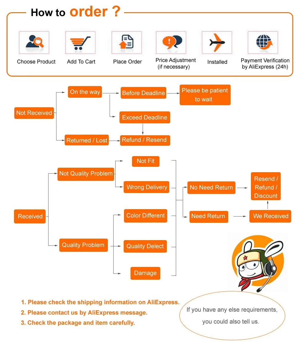 1. После получения посылки в течение 7 дней, мы можем принять возврат и возврат средств без каких-либо причин; Более 7 дней, мы предоставляем гарантию на ремонт или замену;