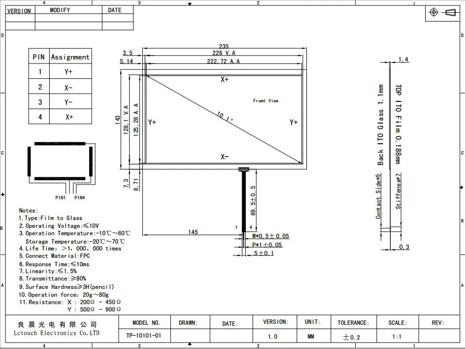 16:9 10,1 дюймов одновременно (батарейки в комплект не входят) контроллер 4 провода USB резистивный сенсорный экран Экран