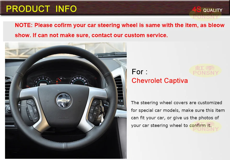 Чехол для руля автомобиля PONSNY, черный чехол из натуральной кожи для Chevrolet Captiva