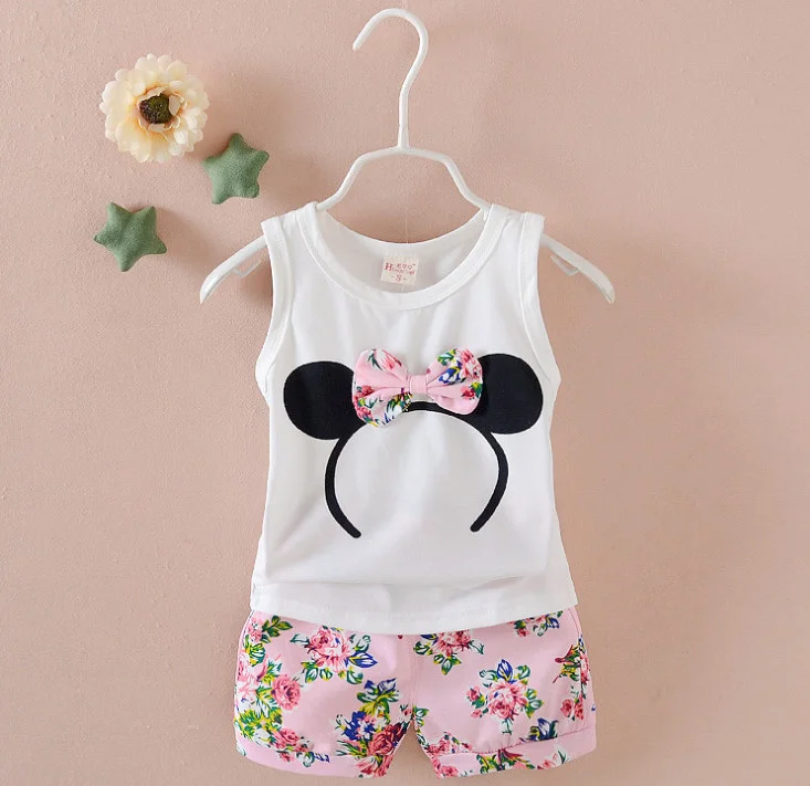 Новинка, летняя модная детская одежда, жилет и шорты с мультяшным рисунком для мальчиков и девочек, 2 шт.компл., хлопковая одежда для младенцев, детская спортивная одежда для малышей