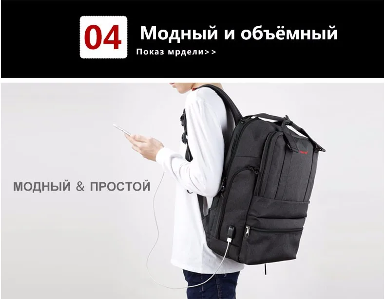 Рюкзак Tigernu мужской для ноутбука 15,6 дюйма, с защитой от кражи и USB-зарядкой
